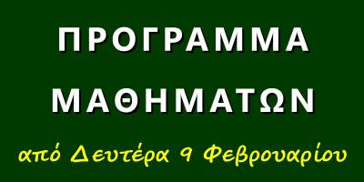 Πρόγραμμα μαθημάτων από Δευτέρα 9/2/2026