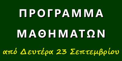 Πρόγραμμα μαθημάτων από Δευτέρα 23/9/2024