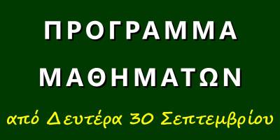 Πρόγραμμα μαθημάτων από Δευτέρα 30/9/2024