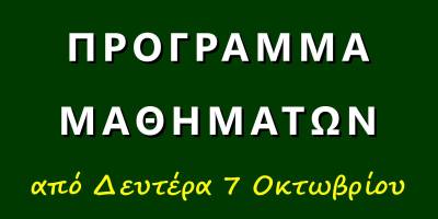 Πρόγραμμα μαθημάτων από Δευτέρα 7/10/2024