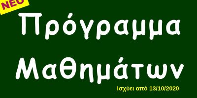 Νέο Πρόγραμμα από Δευτέρα 26/10