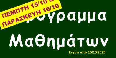 Πρόγραμμα Πέμπτης 15/10 και Παρασκευής 16/10