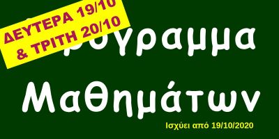 Πρόγραμμα Δευτέρας 19/10 & Τρίτης 20/10
