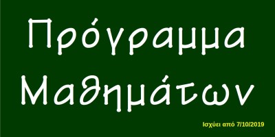 Πρόγραμμα μαθημάτων από Δευτέρα 7/10/2019