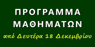 Πρόγραμμα μαθημάτων από Δευτέρα 18/12/2023