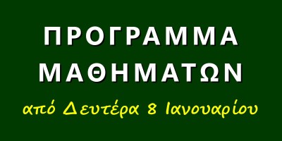 Πρόγραμμα μαθημάτων από Δευτέρα 8/1/2024