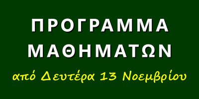 Πρόγραμμα μαθημάτων από Δευτέρα 6/11/2023
