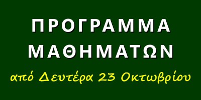 Πρόγραμμα μαθημάτων από Δευτέρα 23/10/2023