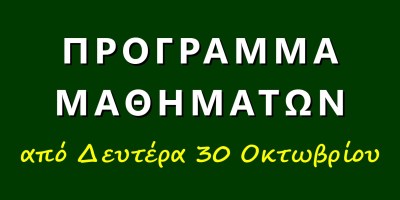 Πρόγραμμα μαθημάτων από Δευτέρα 30/10/2023