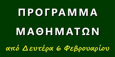 Πρόγραμμα μαθημάτων από Δευτέρα 3/2/2023